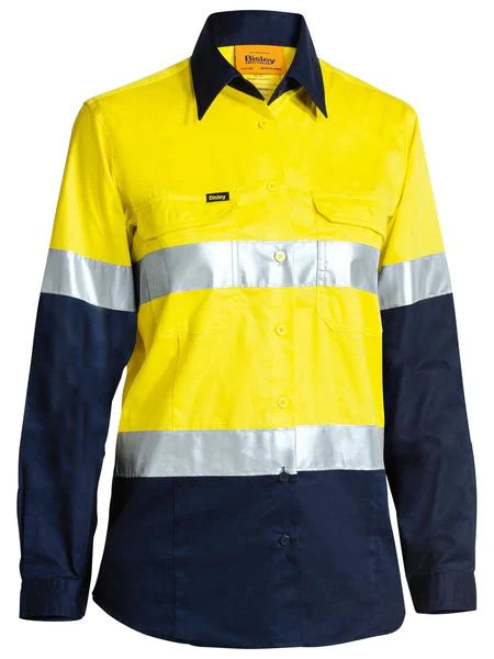 Bisley Womens 3M Taped Two Tone Hi Vis Cool Lightweight Shirt - Long Sleeve (BL6896)
