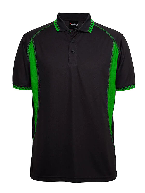 100% Polyester 160gsm pique knit fabric Podium CoolTM moisture wicking fabric designed to help keep you cool...